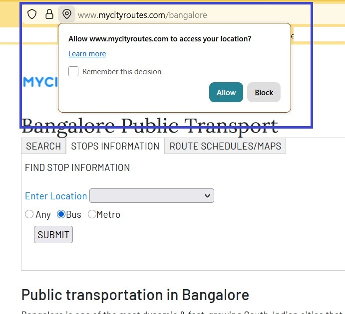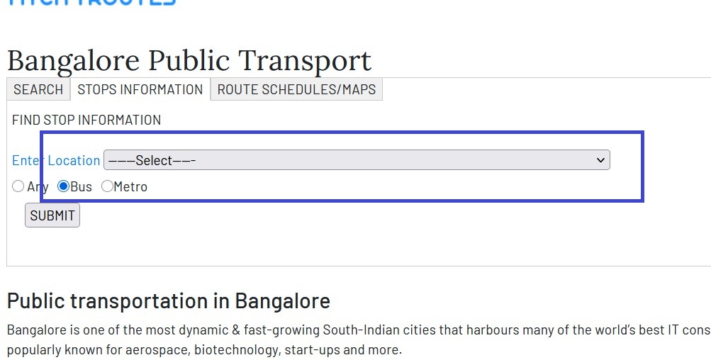 Find a BMTC station near you with this tool. This tool helps you find the nearest bus stop around you. Just follow the steps to find the nearest bus station and the information.